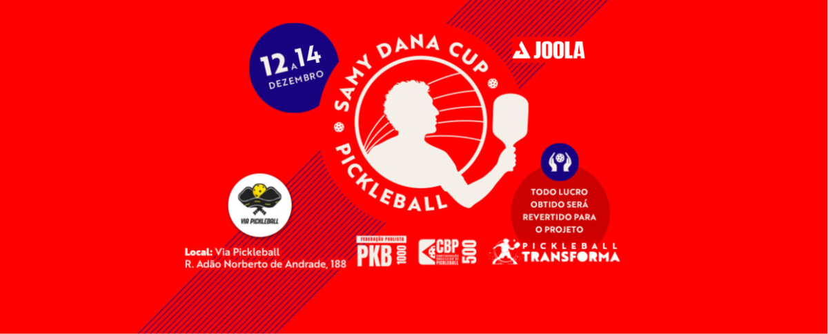 A Samy Dana Cup é um torneio sem fins lucrativos, e toda a renda arrecadada será destinada ao Projeto Pickleball Transforma, que utiliza o esporte como ferramenta de inclusão e impacto social.